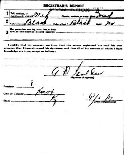 World Ward Draft Card donated by Patti Partin