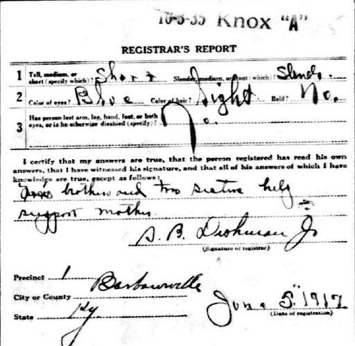 WWI DRAFT CARD - JOHN F. YEAGER