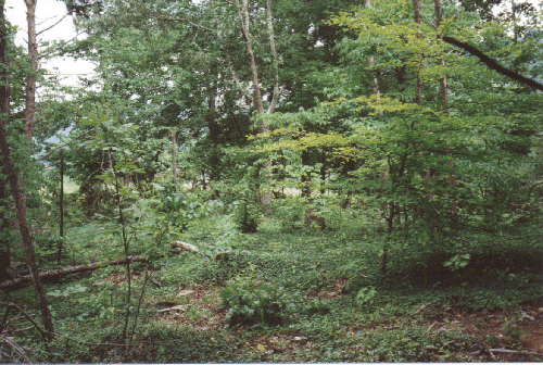 a blanket of Periwinkle and dense underbrush. This cemetery is a mass of