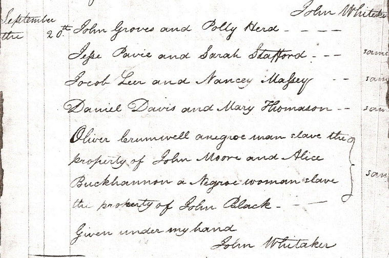 Oliver Cromwell a negroe man slave the