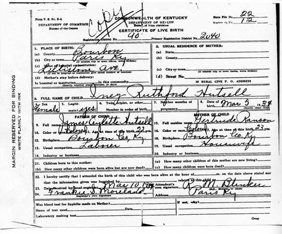 Date of Death: 7 December 2001 Place of Death: Bourbon Co., KY
