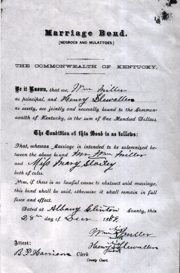 Wm Miller and Mary Stailey; 28 December 1879; Albany, Clinton Co., KY