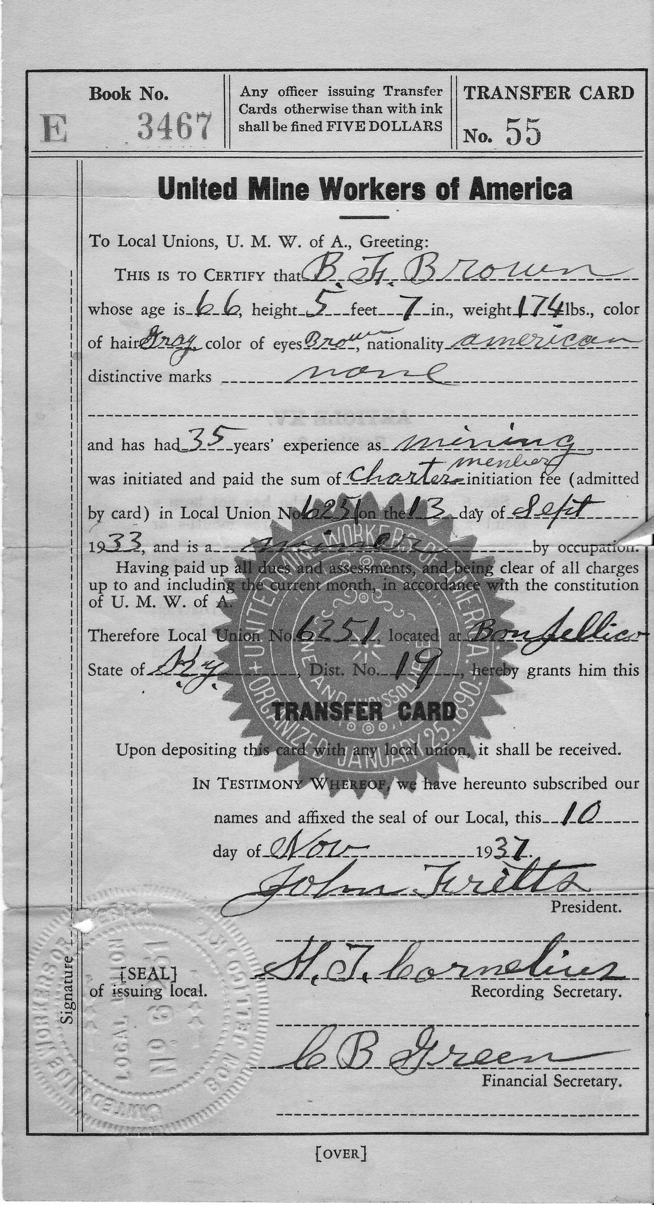 of the United Mine Workers union, came to Bon from Jellico, Tennessee