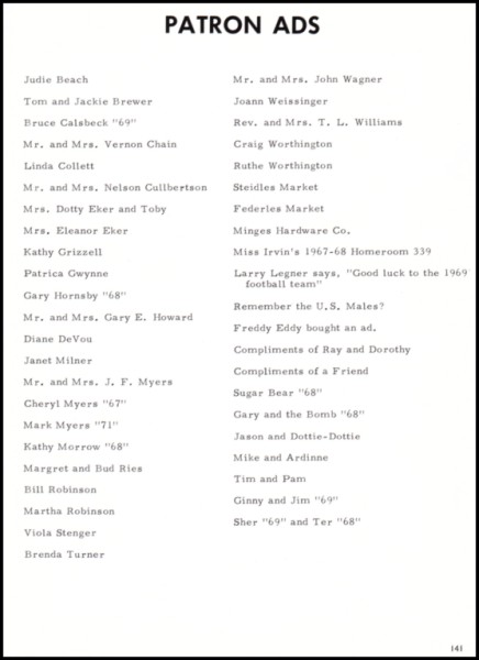 Row 3: Patsy Lee, Debbie Leicht, Pam Lemon, Larry Lightfoot, Michael LobeRow 4: JoAnn Lovelace, Ginger Lukens, Cynthia Lytle, Sandra Mains, Michael MartinRow 5: Mary Mayfield, James Mayes, Ronald McGuire, Carol McMillian, Richard Montgomery