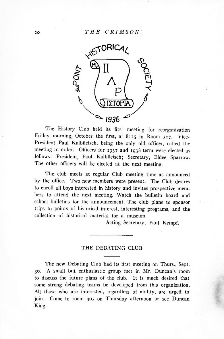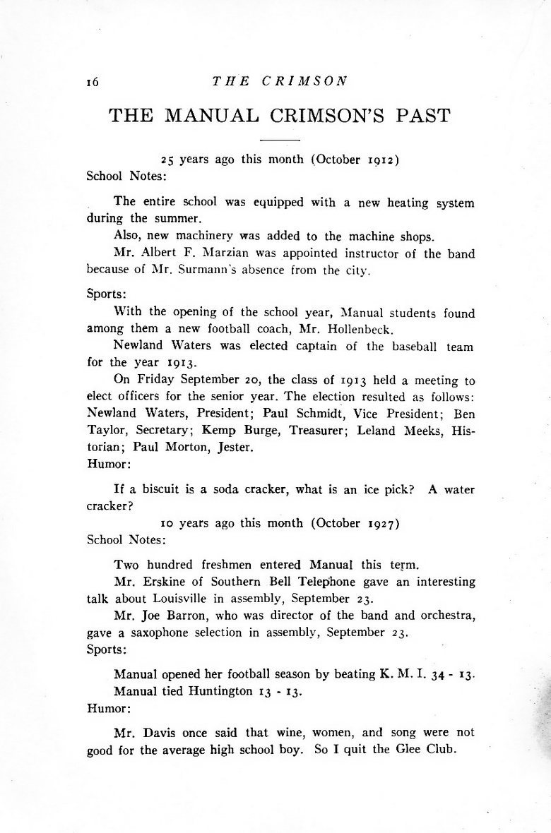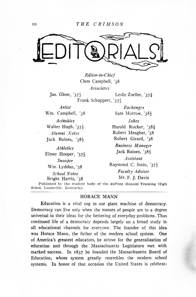~Jefferson County~~Du Pont Manual Training High School~~October 1937 Yearbook~~The Crimson~~Student Publication~