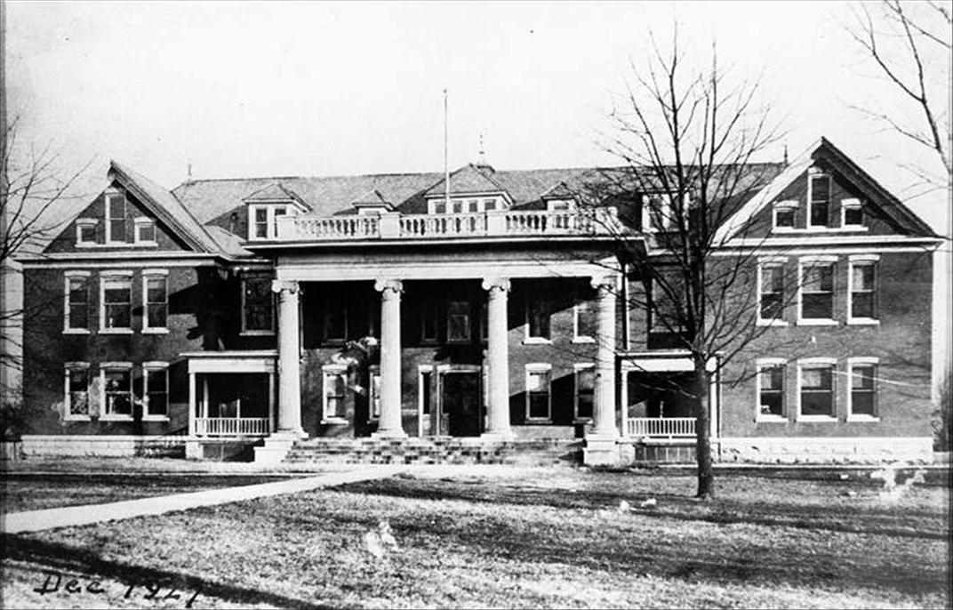 This is a picture of the FRANKLIN GRADED SCHOOL in December 1927. It was located on South Main Street at the corner of Breckenridge Street in Franklin, Simpson Co, Ky. The building was formerly the Southern School of Osteopathy which closed about 1907. This building housed the twelve-year school until 1917 when grades 7-12 were moved to another building. Grades 1-6 continued at the Franklin Graded School until 1957.