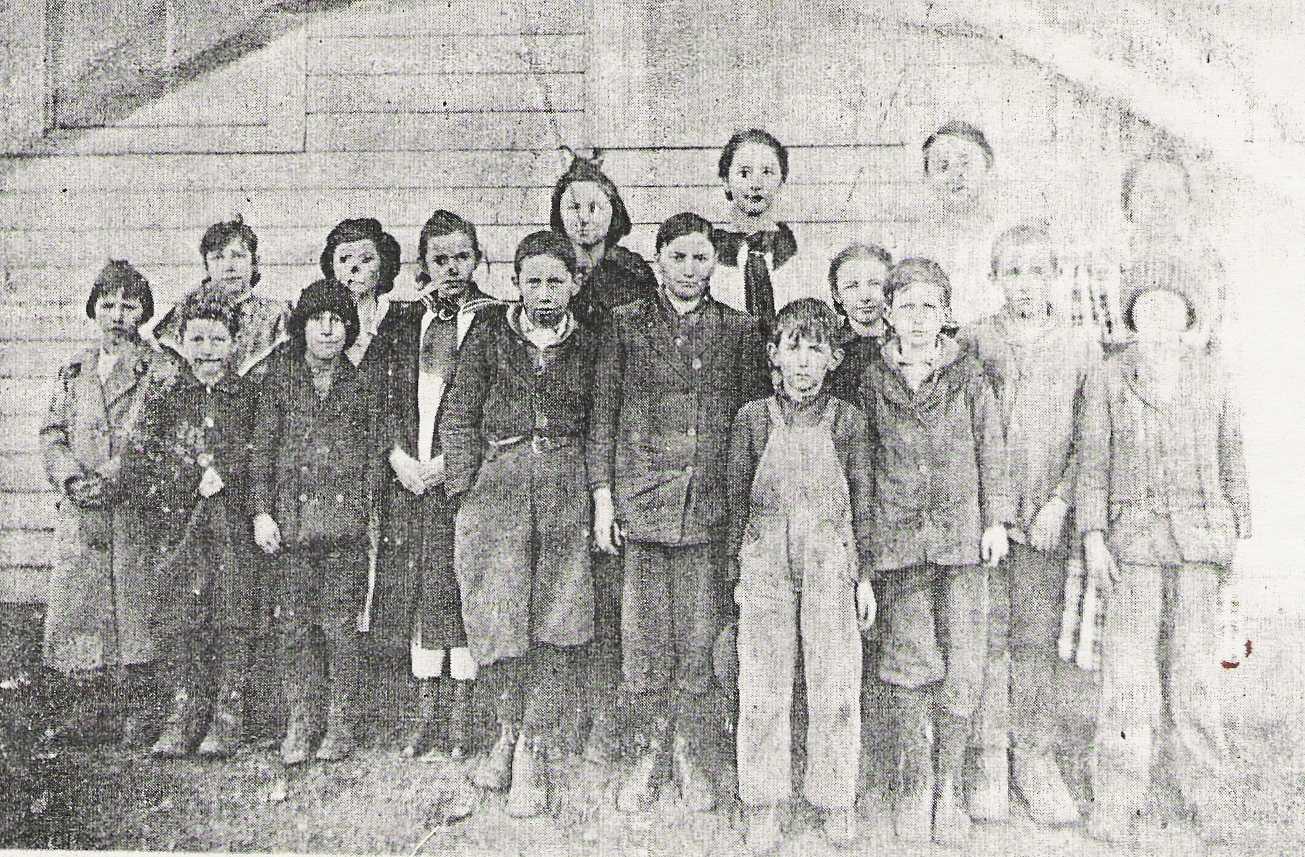 Back Row, from left: Marty Lee Aldridge, Helen Chandler, Pauline Faulkner, Thelma Chandler, Geneva Smith, Nettie Smith, Mattie Morgan (teacher), Ora Lee Aldridge