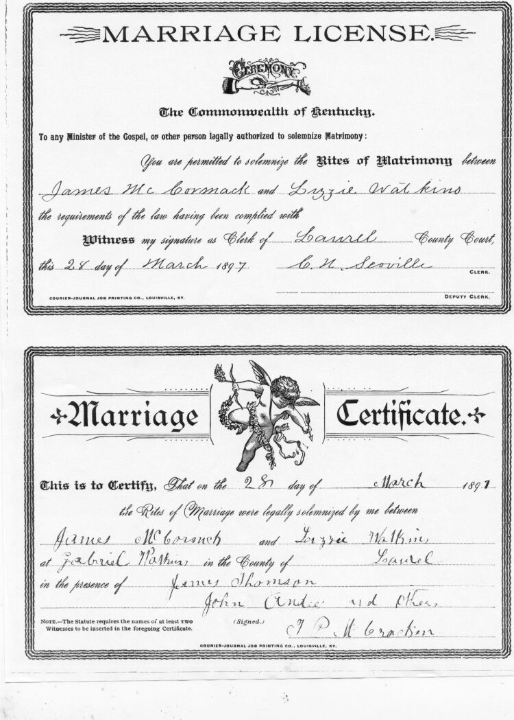 James McCormick/Lizzie Watkins March 28, 1897