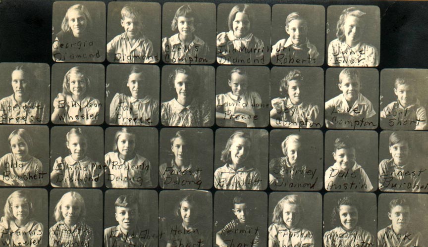Jean Wheeler, Frances Fay Preece, Teacher Sara (Sis) Rice, Laura Jane