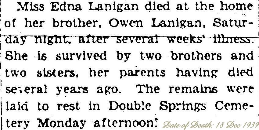 Vola Brown and Dan Gutenson. Burial will be in Double Springs Cemetery.