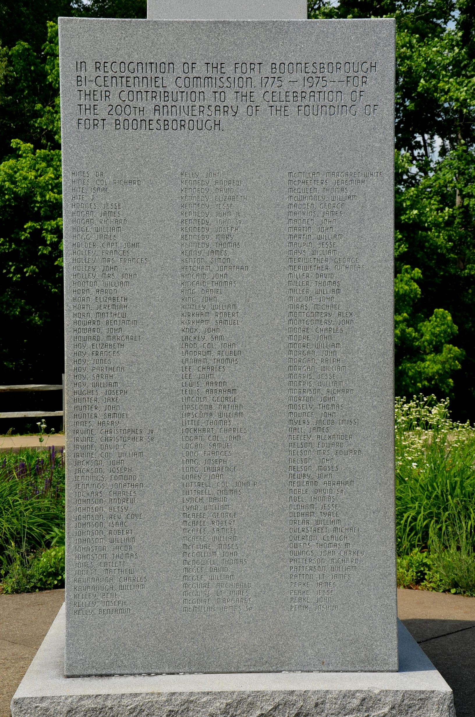 John ALLEN, Richard ALLEN, Thomas ALLEN, Aletha ANDERSON, James ANDERSON, Jemima ANDERSON, John ANDERSON, Mary ANDERSON, Nicholas ANDERSON, John ANTHONY, Joseph ANTHONY, Uriel ARK, Daniel ASHBY, l Thomas BAILEY, Isaac BAKER, Bland BALLARD, Abraham BANTA, Henry BANTA Jr., Henry BANTA Sr., John BANTA, James BARBORN, Samuel BARKER, William BARKER, Alex BARNETT, Abrose BARNETT, James BARNETT, John BARNETT, Joseph BARNETT, Robert BARNETT, James BARNHILL, David BARTON, Joab BARTON, Joshua BARTON, Samuel BARTON, Thomas BARTON, Williasm BARTON, Catherine BAUGHMAN, Jacob BAUGHMAN, John BAUGHMAN, Col. Edward BAXTER, Charles BEALE, G. Michael BEDINGER, Flowner BELL, Samuel BELL, John BELLENTINE, Charles BELLEW, John BENNETT, Joseph BENNING, William BENTLEY, Jesse BENTON, James BERRY, Humphrey BEST, Moese BEST, Stephen BEST, Mary Gass BLACK, William BLACK, Joseph BLACKFORD, Anthony BLEDSOE, Joseph BLEDSOE, Moese BLEDSOE, Robert BOGGS, John Peter BONDURANT, Ann BOONE, Betsey BOONE, Col. Daniel BOONE, Daniel Morgan BOONE, Edward or Allen BOONE, Enoch Morgan BOONE, George BOONE, Hannah BOONE, Isaiah BOONE, Josiah BOONE, Lvinia BOONE, Moses BOONE, Nathan BOONE, Rebecca BOONE, Sarah BOONE, Squire BOONE, Mrs. Squire BOONE, Squire BOONE, Squire H. BOONE, Susan BOONE, Ulissy BOONE, Albert BORUS, John BOWLES, John BOYLE, Edward BRADLEY, James BRIDGES, Samuel BROOKS, Thomas BROOKS, William BROOKS, David BRYANT, George BRYANT, Henry BRYANT, James BRYANT, Jonathan BRYANT, Joseph BRYANT, Rebecca BRYANT, Thomas BRYANT, William BRYANT, Capt. William BUCHANAN, Edward BULGER, John BULGER, John BULLOCK, Leonard Henley BULLOCK, Nathaniel BULLOCK, David BUNDAN, John BUNORAN, James BUNTEN, Capt. William "Billy" BUSH, Maj. William BUSHBY, John BUTLER, Robert CALDWELL, William CALK, Mrs. William CALK, Caleb CALLOWAY, Edgar CALLOWAY, Elizabeth CALLOWAY, Flanders CALLOWAY, Frances CALLOWAY, George CALLOWAY, John CALLOWAY, Hezekiah CALLOWAY, Keziah CALLOWAY, Lydia CALLOWAY, Col. Richard CALLOWAY, Mrs. Richard CALLOWAY, John CAMERON, Samuel CAMPBELL, Adam CAPERTON, Braxton CARTER, John CARTWRIGHT, Robert CARTWRIGHT, Abraham CHAPLAIN, Elizabeth Mullins CHENAULT, William CHENAULT, Gen. George Rogers CLARK, Gen. Green CLAY, Judge John COBURN, Samuel COBURN, Capt. William COCKE, Ambrose COFFEE, Jesse COFFEE, John COLEFORT, Alex COLLINS, Elijah COLLINS,