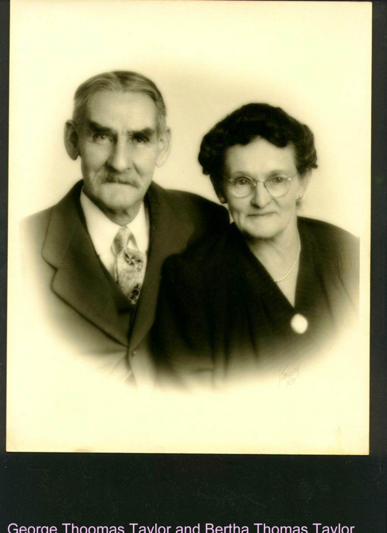 Bertha Thomas, wife of George Thomas Taylor, d/o Daniel Floyd Thomas and Candace Garrett and granddaughter Andrew Garrett and Nancy Jane Gentry.