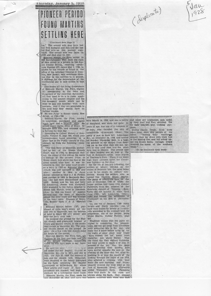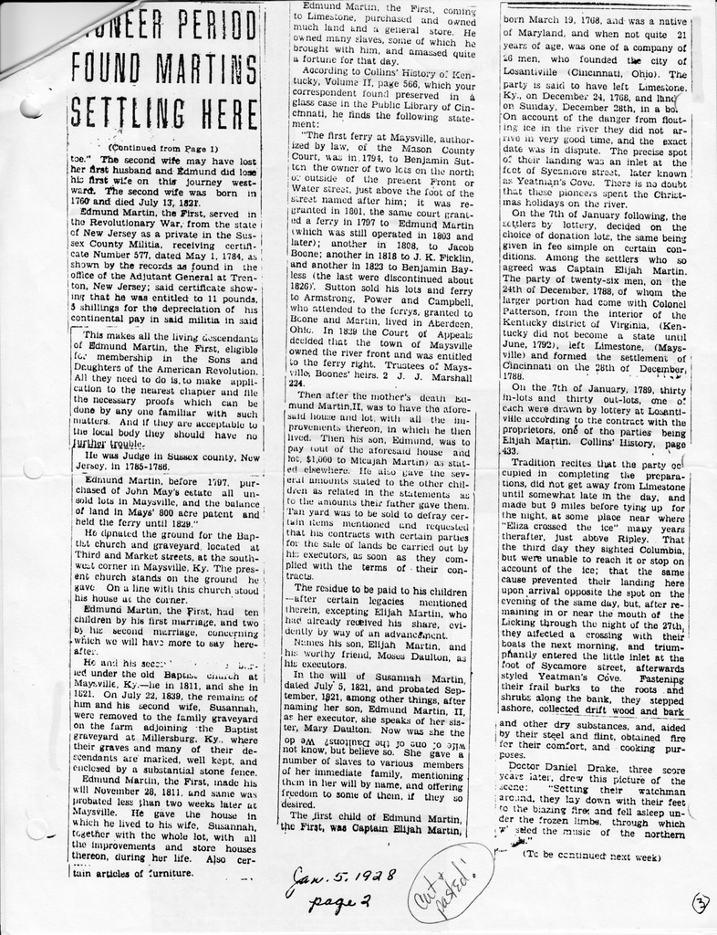 1927 history of the Martin family, published in the Georgetown, Ohio, News Democrat: