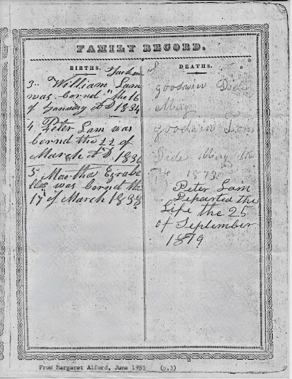 - Martha Ezrabella Lam, born 17 Mar 1838.