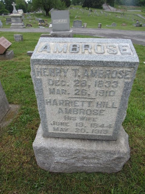 - Ambrose, Harriett Hill. Born 19 June 1844. Died 20 May 1919. Gravestone.