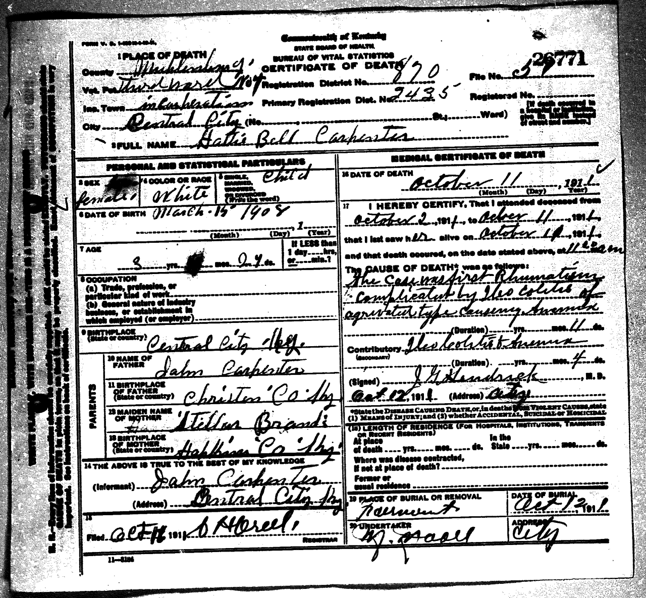 Kentucky Death Certificate 11032.