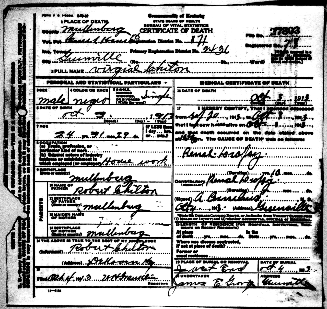 - Chilton, Virgil (1889 - 1913) Kentucky Death Certificate 27803.