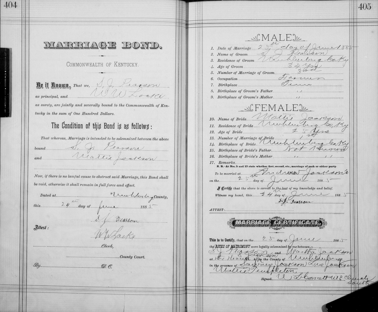 | 1892 | Jackson, Bell | McPherson, Ether N. | 19/121 | |