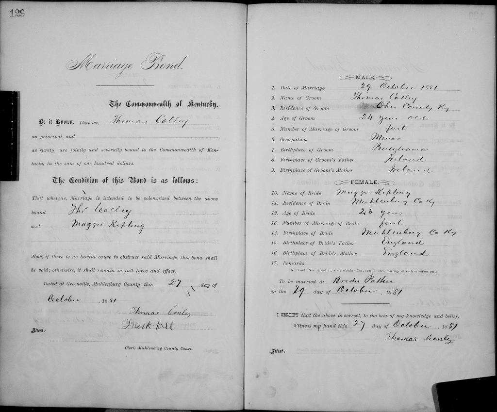 | 1939 | Kirtley, Marietta Elizabeth | Cochram, Charlie | 88/358 | |