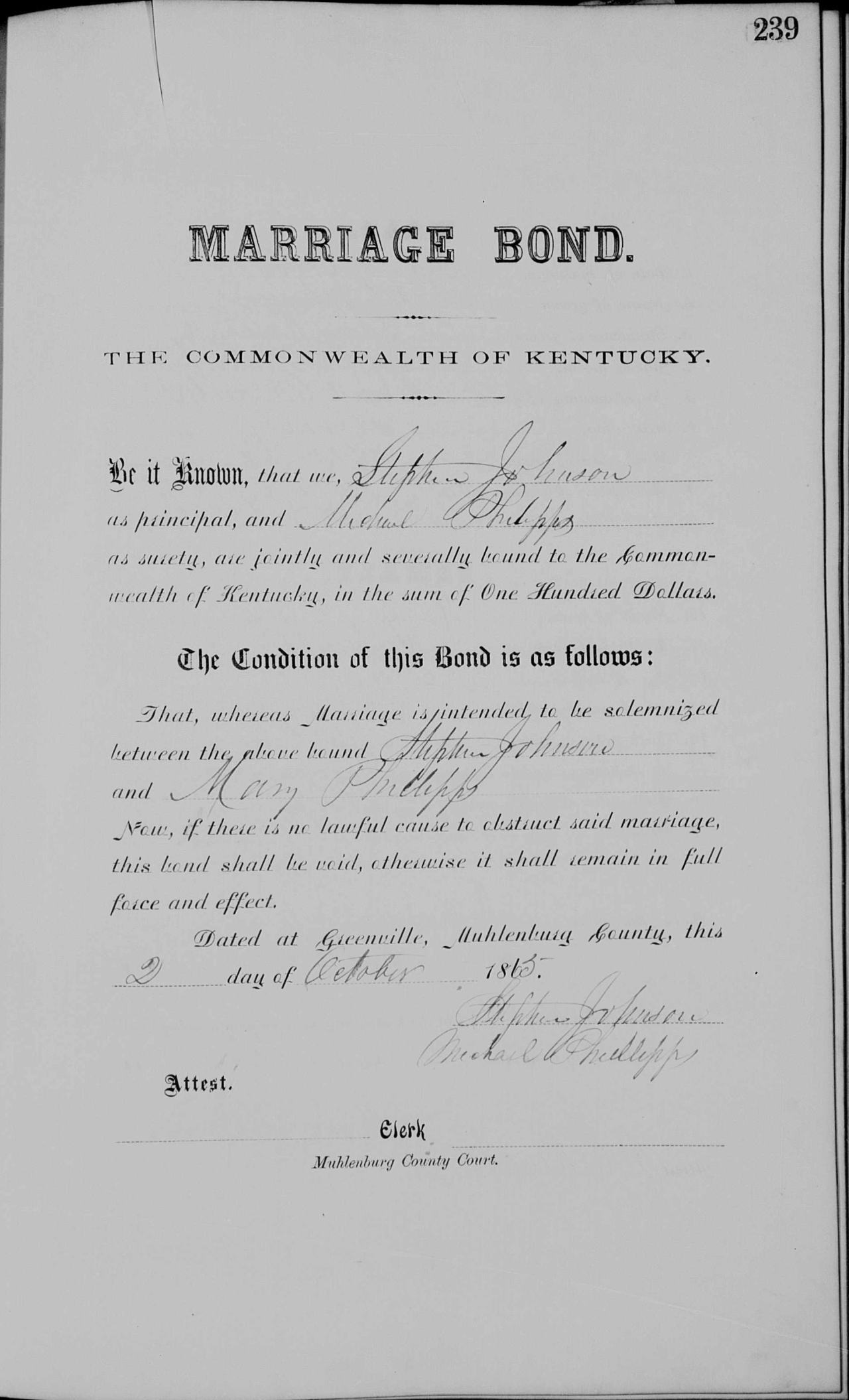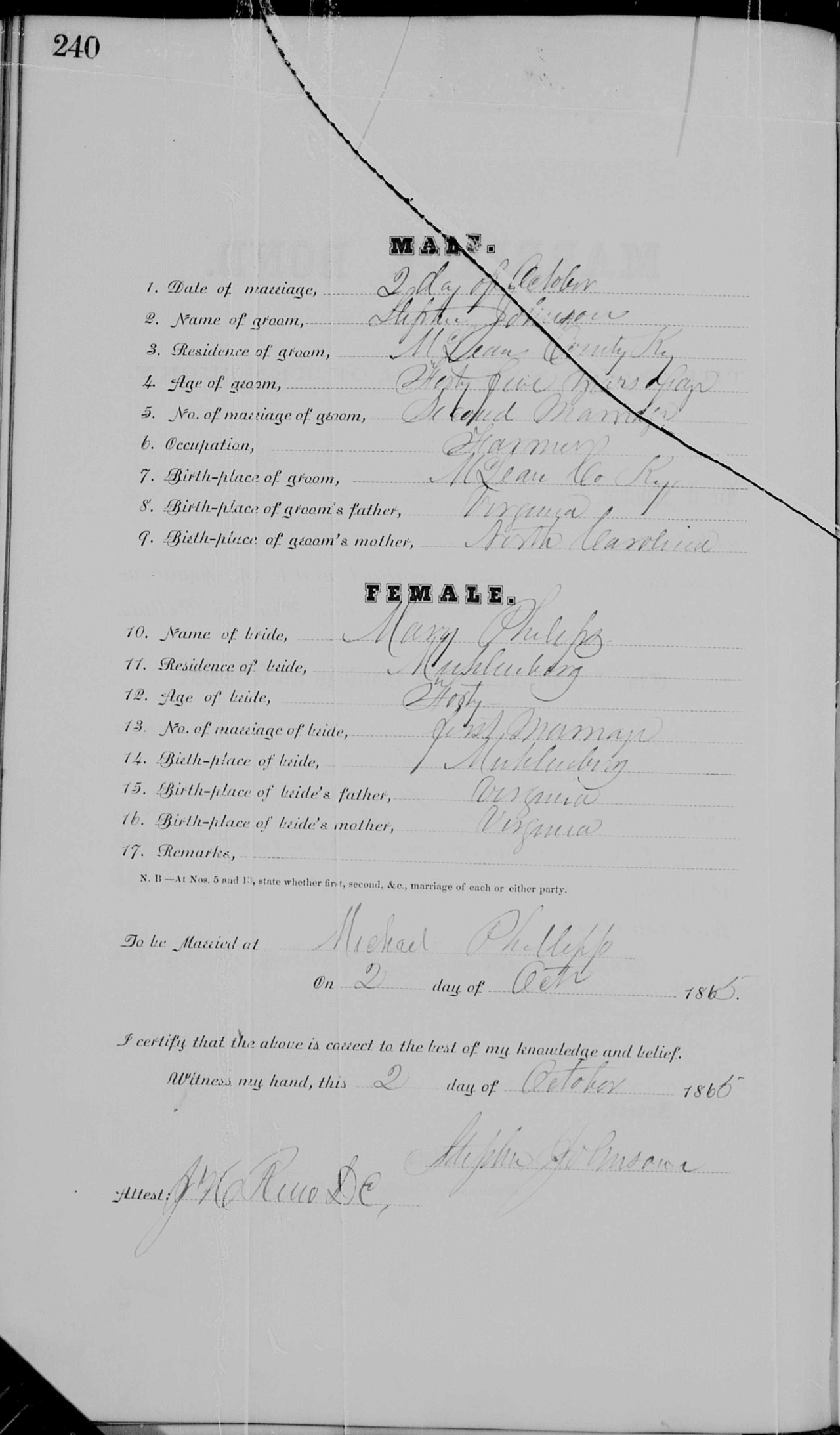 | 1865 | Phillips, Mary | Johnson, Stephen | 5/239 | p.239 p.240 |