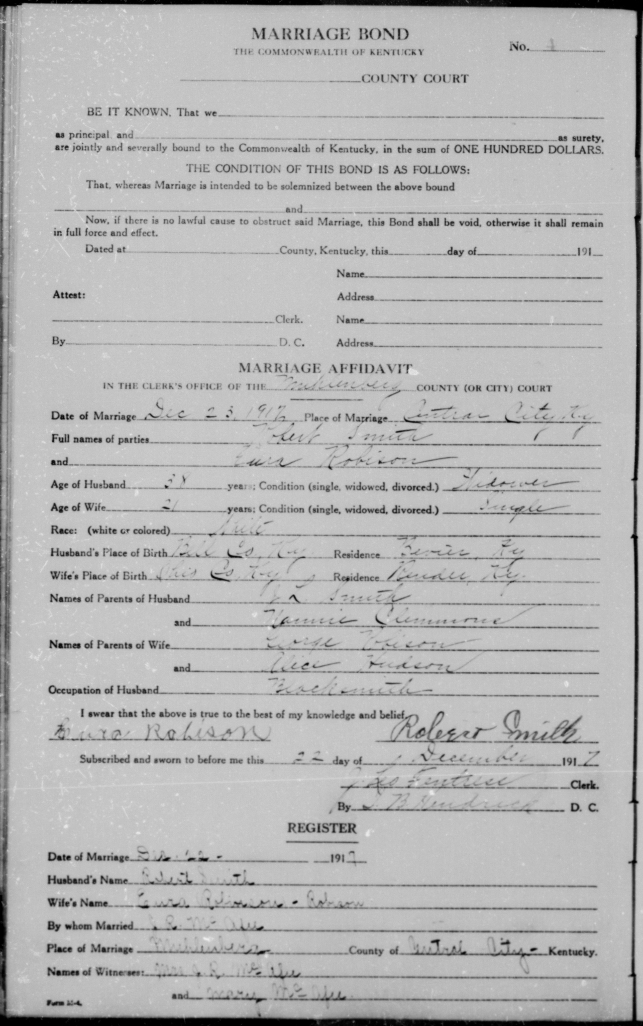| 1907 | Robards, Ida Lee | Clements, John K. | 29/89 | |