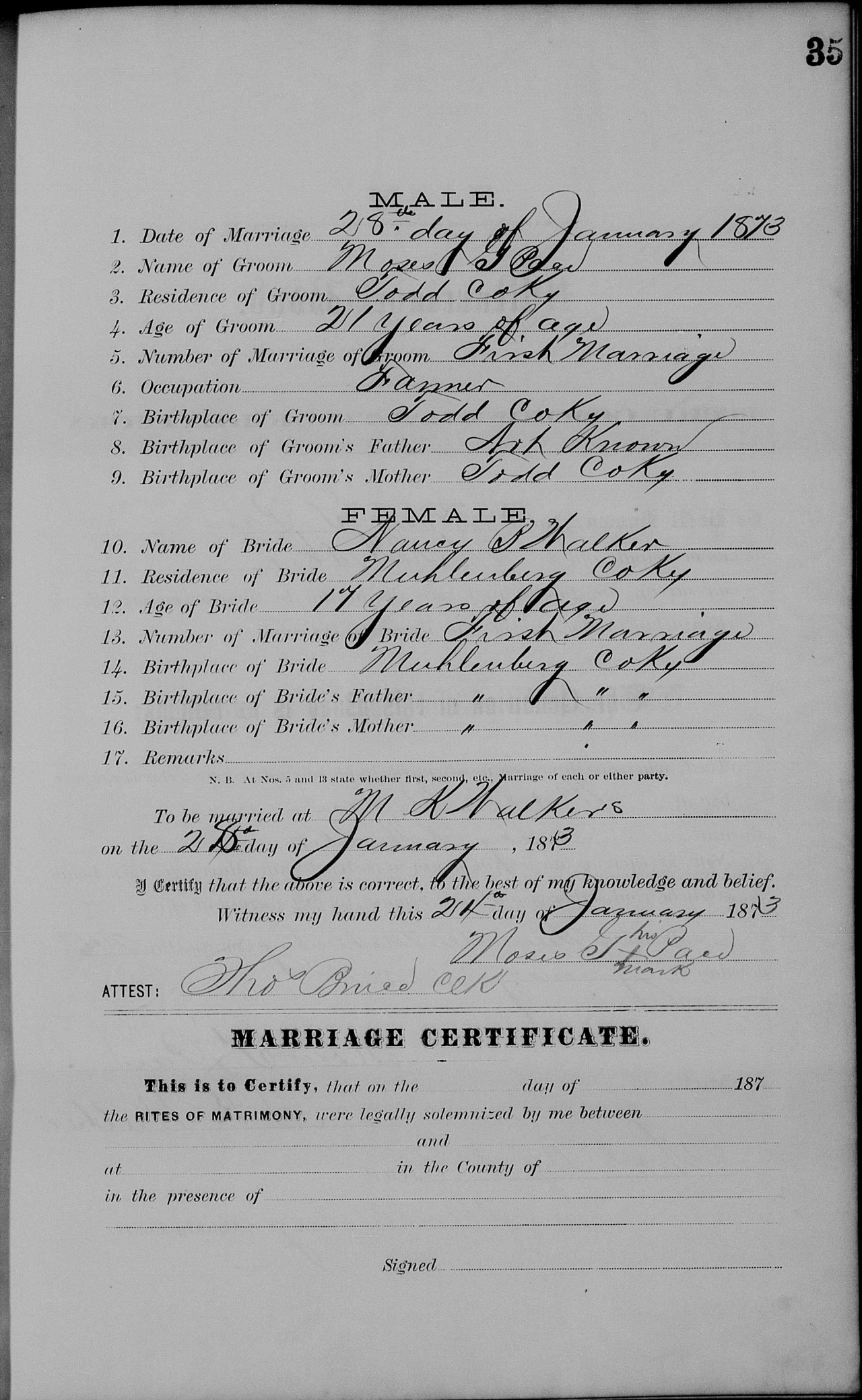 | 1873 | Walker, Nancy B. | Pace, Moses G. | 9/35 | p.35 p.36 |