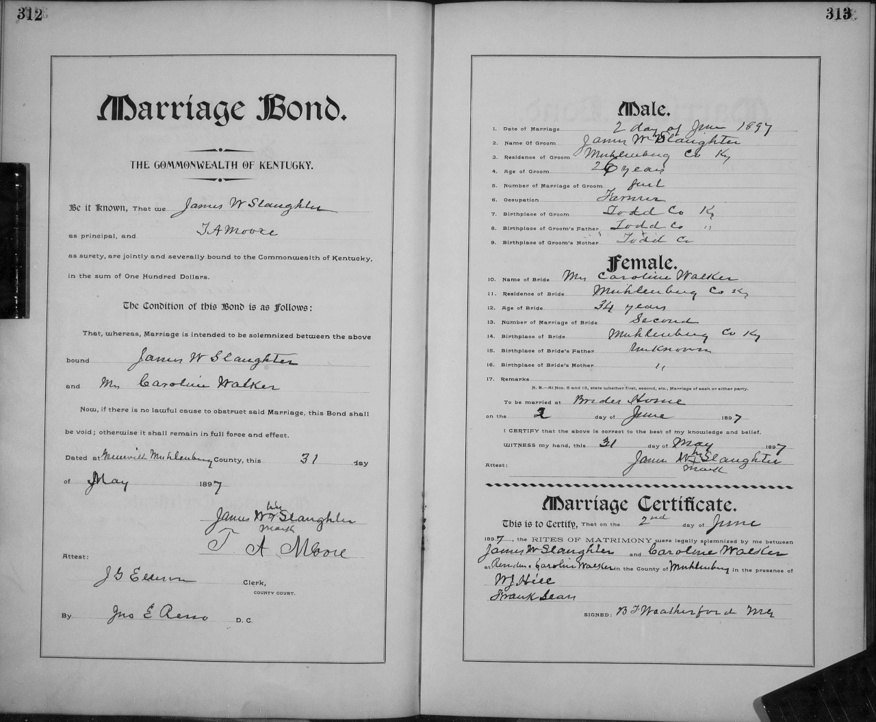 | 1897 | Walker, Caroline | Slaughter, James W. | 21/312 | p.312 |