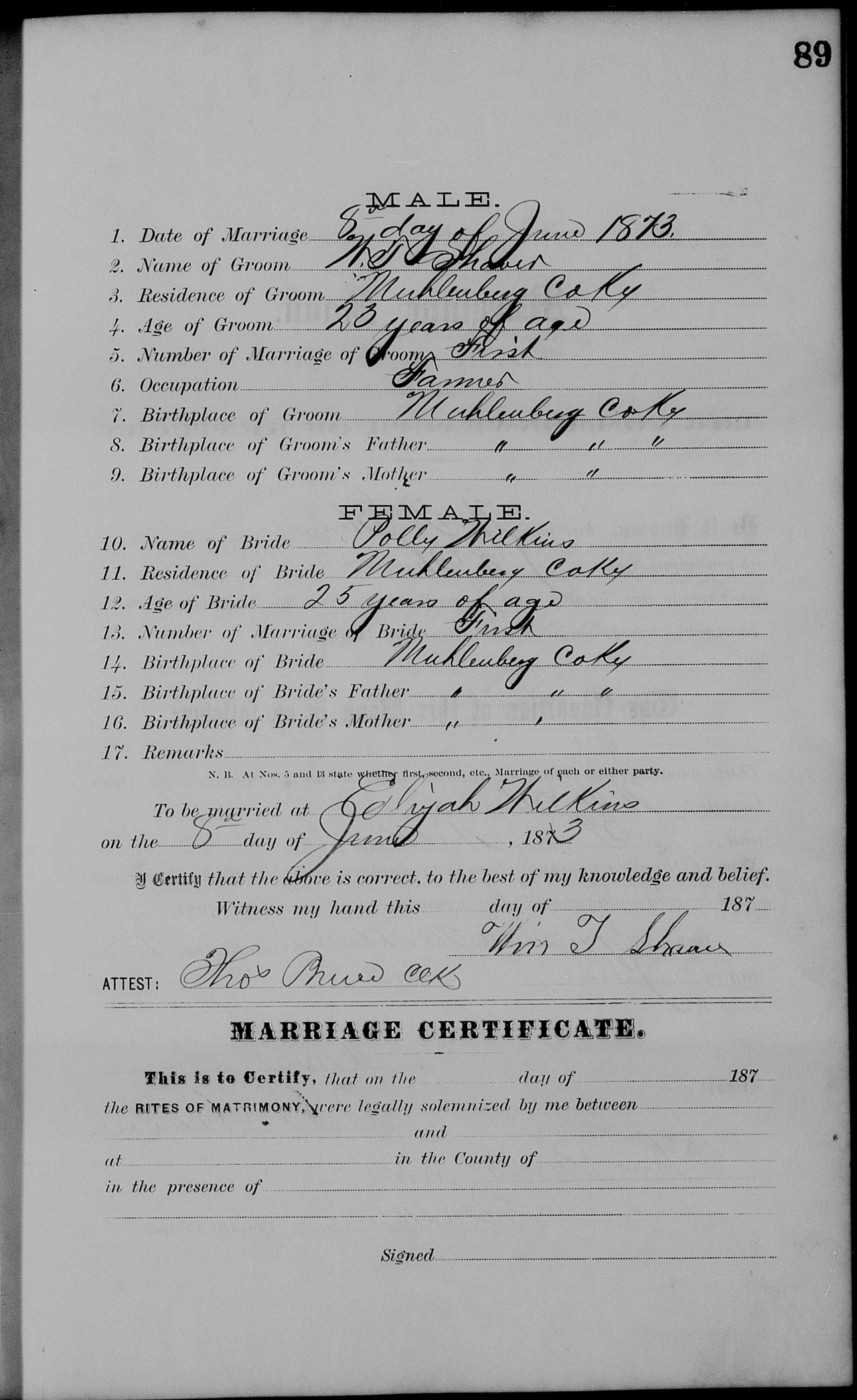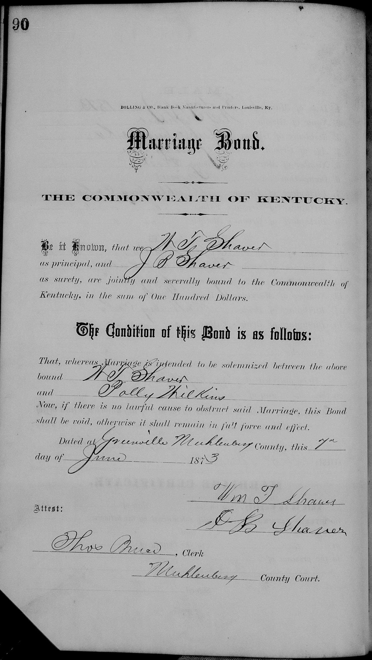 | 1873 | Wilkins, Polly | Shaver, W.T. | 9/89 | p.89 p.90 |