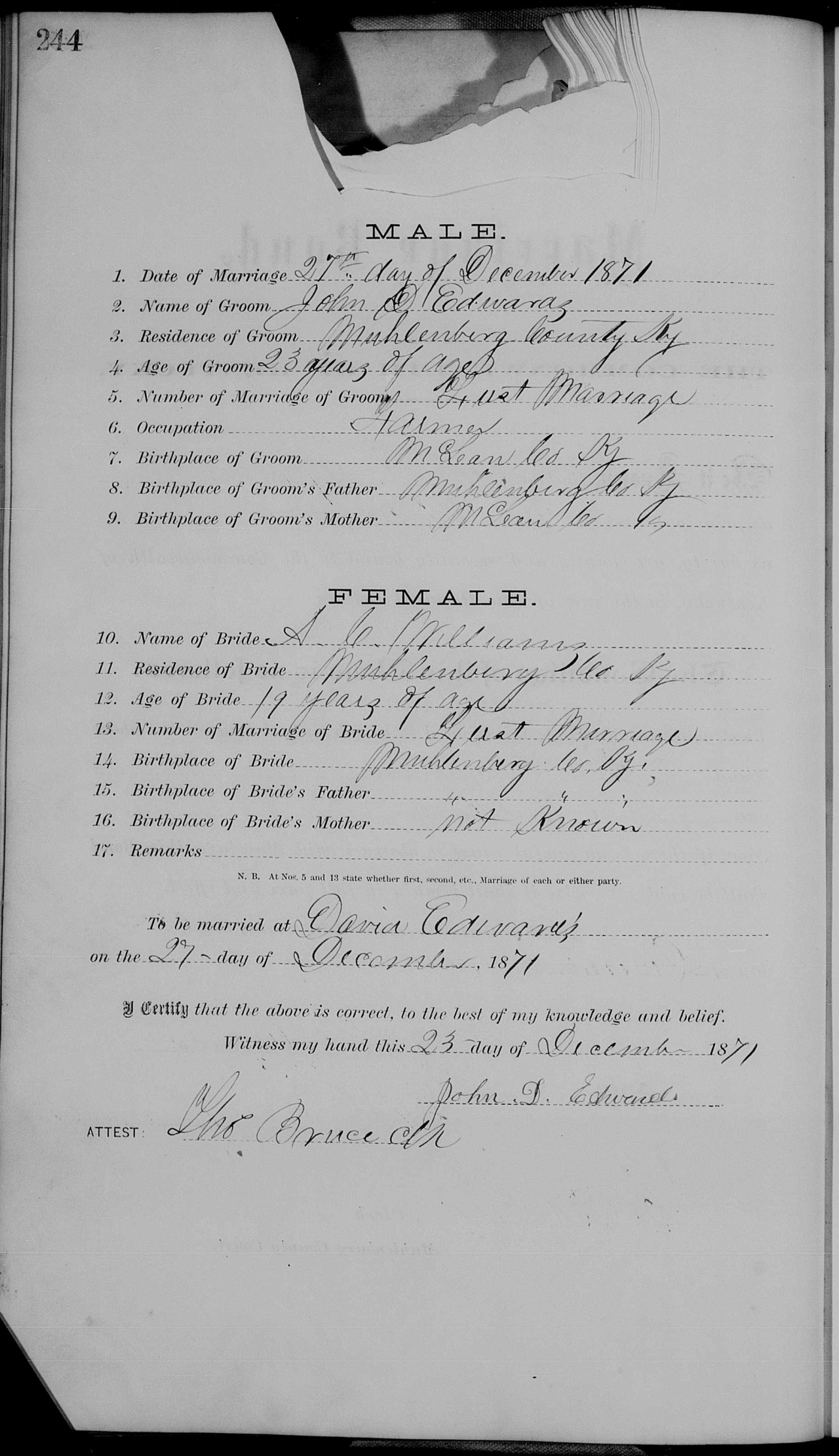 | 1871 | Williams, A.C. | Edwards, John D. | 8/243 | p.243 p.244 |