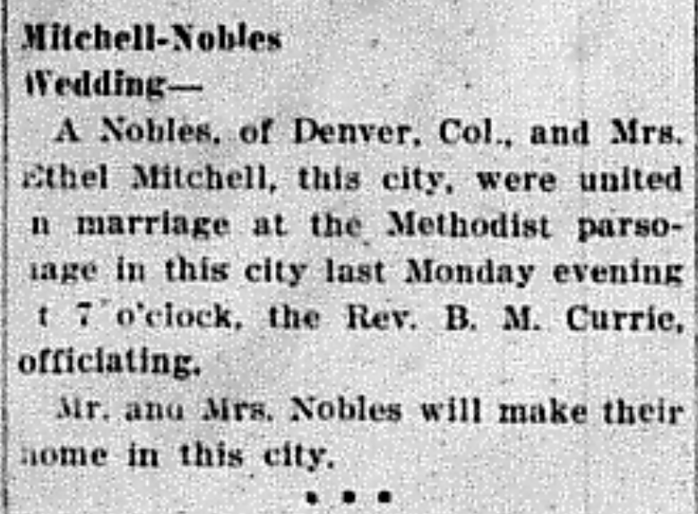 - Mitchell, Ethel & A. Nobles. Messenger [Central City, KY], 30 Mar 1933, Article.