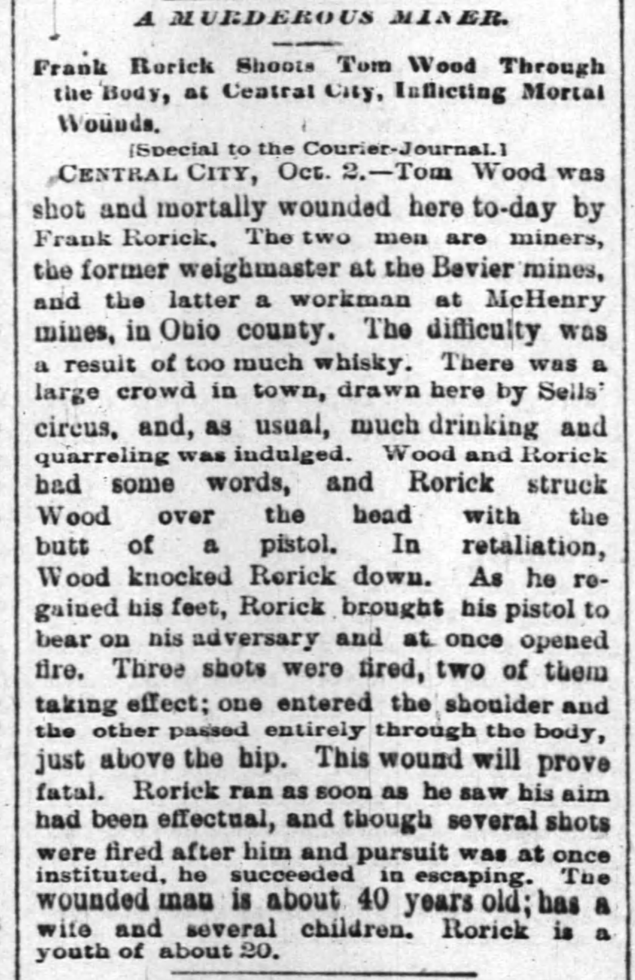 - A murderous miner. Courier Journal [Louisville, KY], 3 Oct 1885, Article.