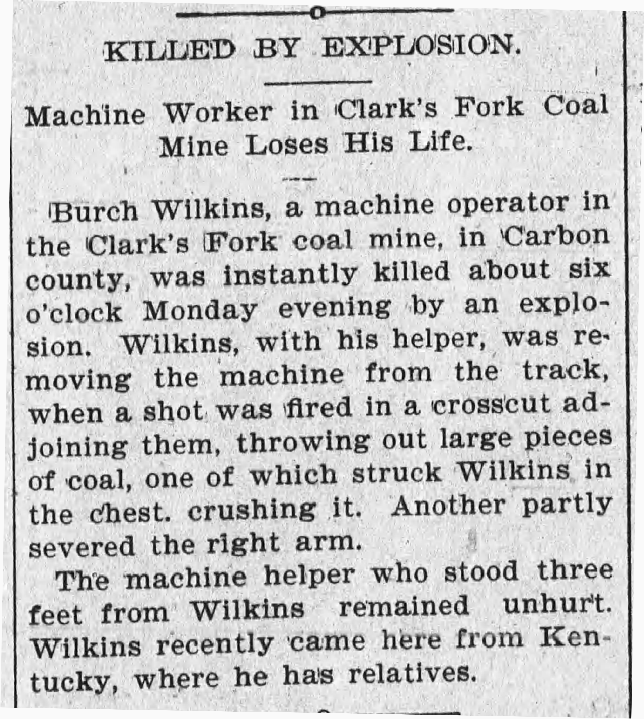 - Killed by explosion. Helena Evening Herald [MT], 14 Feb 1900, Article.