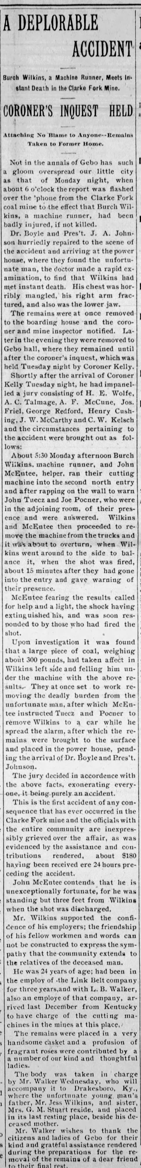 - Source: Unnamed Muhlenberg County 1919 newspaper. Contributed by James Grace.