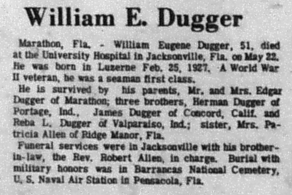 - Dugger, William Eugene. Times Argus [Central City, KY], 7 June 1978, Obituary.