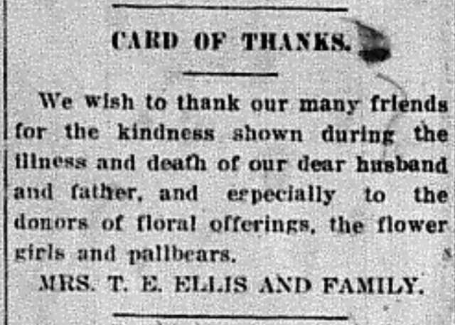 - Ellis, Thomas E. Messenger [Central City, KY], 16 Mar 1933, Obituary.