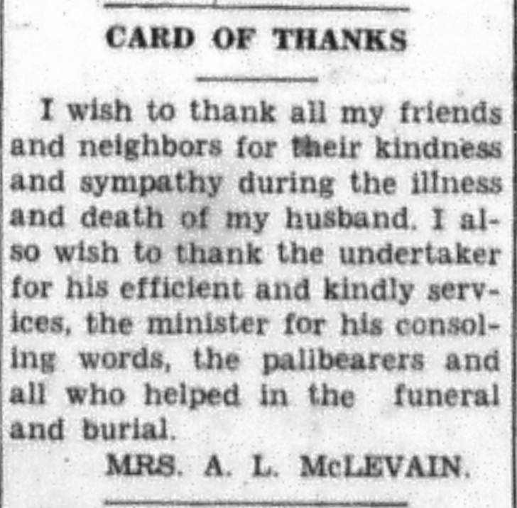 - McLevain, Abraham Lewis. Greenville Leader [KY], 27 July 1934, Obituary.