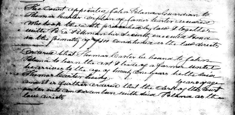 Ordered that William Eaves Jr. be appointed surveyor of that part of the road leading from Greenville to Lewisberg that lies between E.M. Brank's & the Bald Hill & that he with the hands in the following bounds Beginning at E.M. Branks thence to include Thos. Eaves, Jacob Anthony, Thomas Anthony thence to include John Goodnight, open & keep the same in repair, 30 feet wide as the law directs.