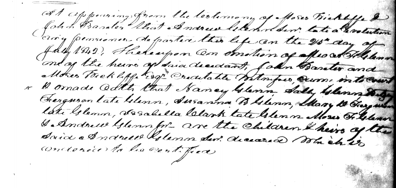 [paid by M.F. Glenn] Moses F. Glenn agent for O.C. Vandlandingham exhibited in to court his list of taxable property (see list) which being examined & sworn to is ordered to be certified to the auditor of public accounts & the sheriff of this county.