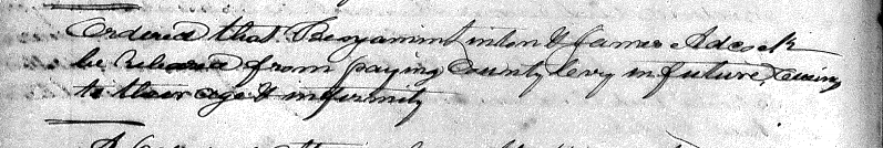 Ordered that Benjamin Linton & James Adcock be released from paying county levy in furture owing to their age & infirmity. [Image]