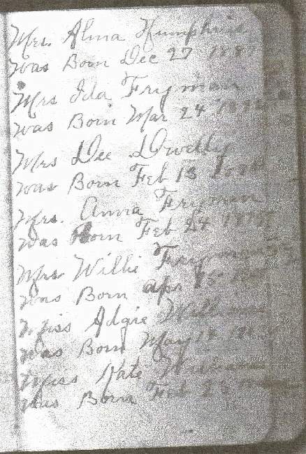 Mrs. Alma Humphries was born Dec 27, 1887.