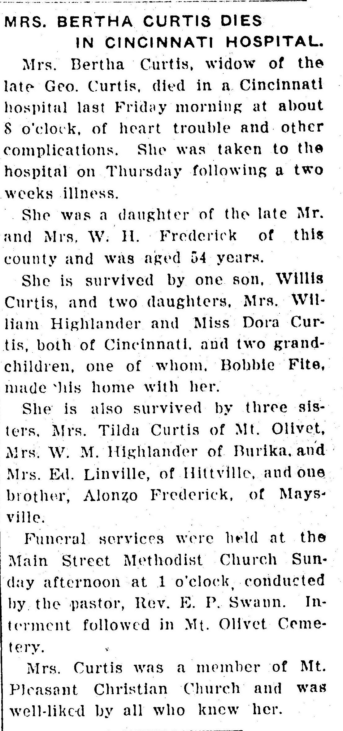 Bertha O Frederick Curtis