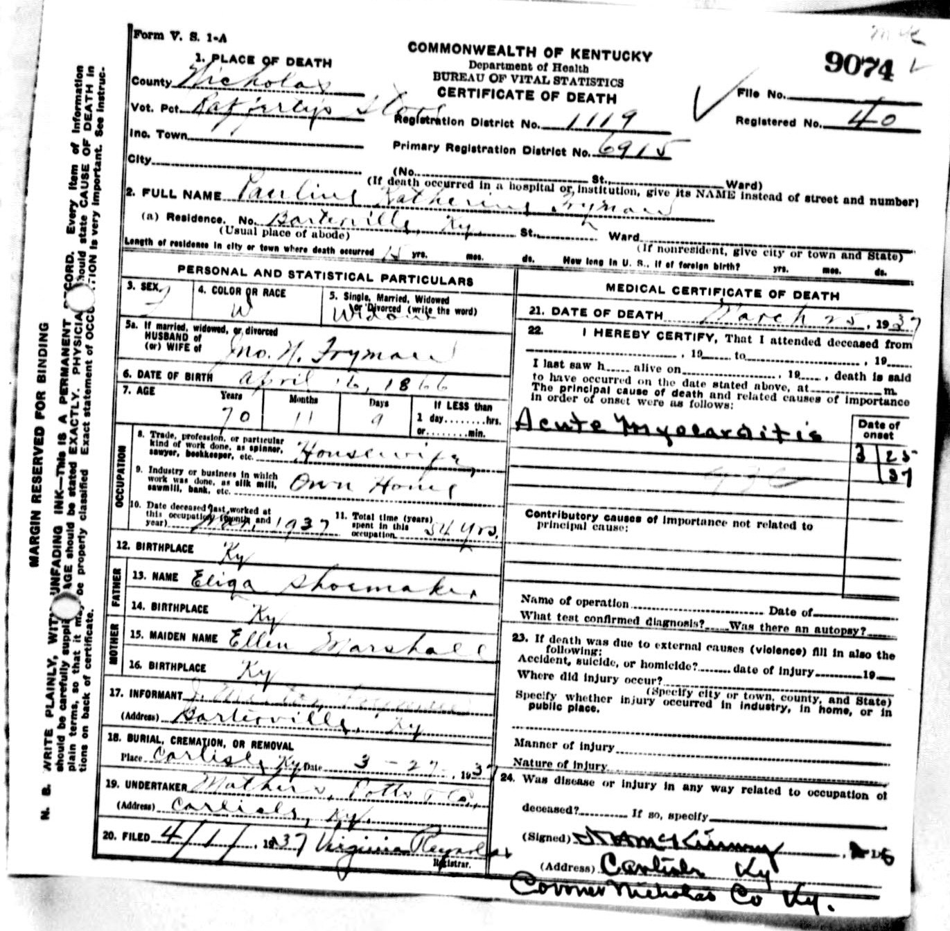 Pauline Catherine Shoemaker Fryman