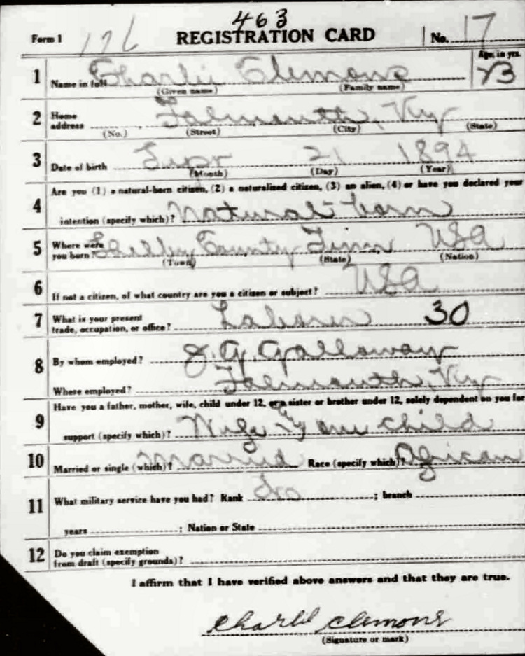 War I Draft Registration Card