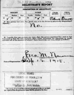 War I Draft Registration Card
