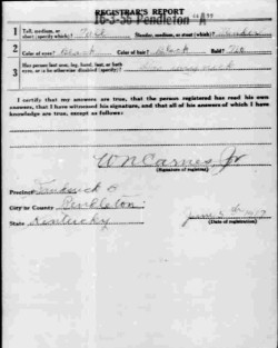 War I Draft Registration Card