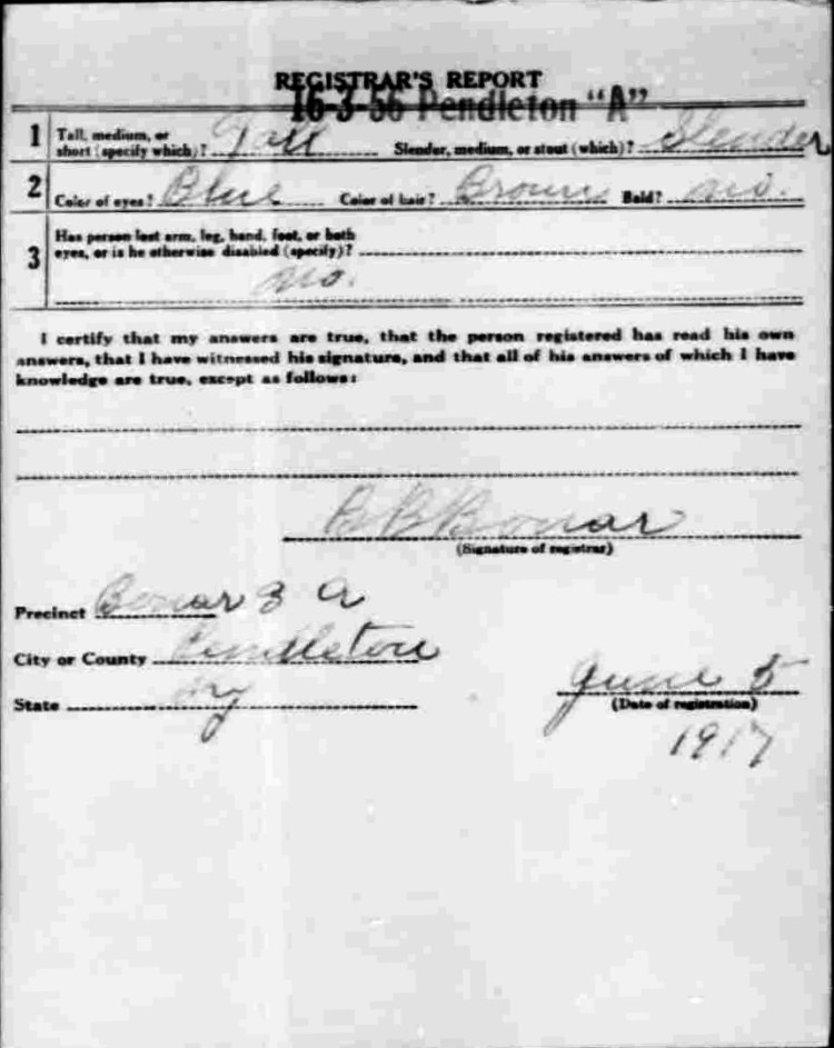 War I Draft Registration Card