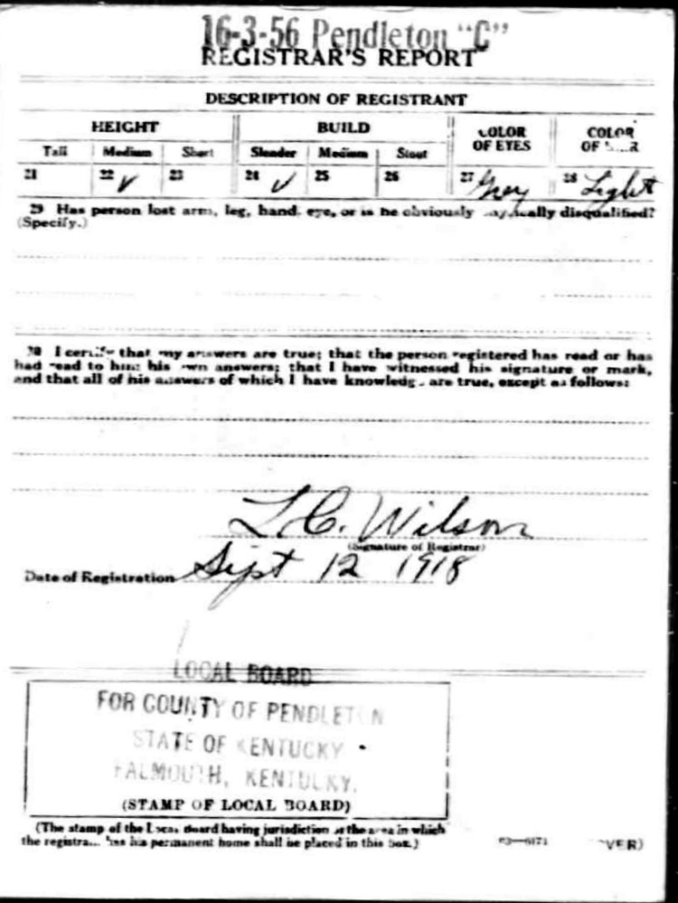 War I Draft Registration Card