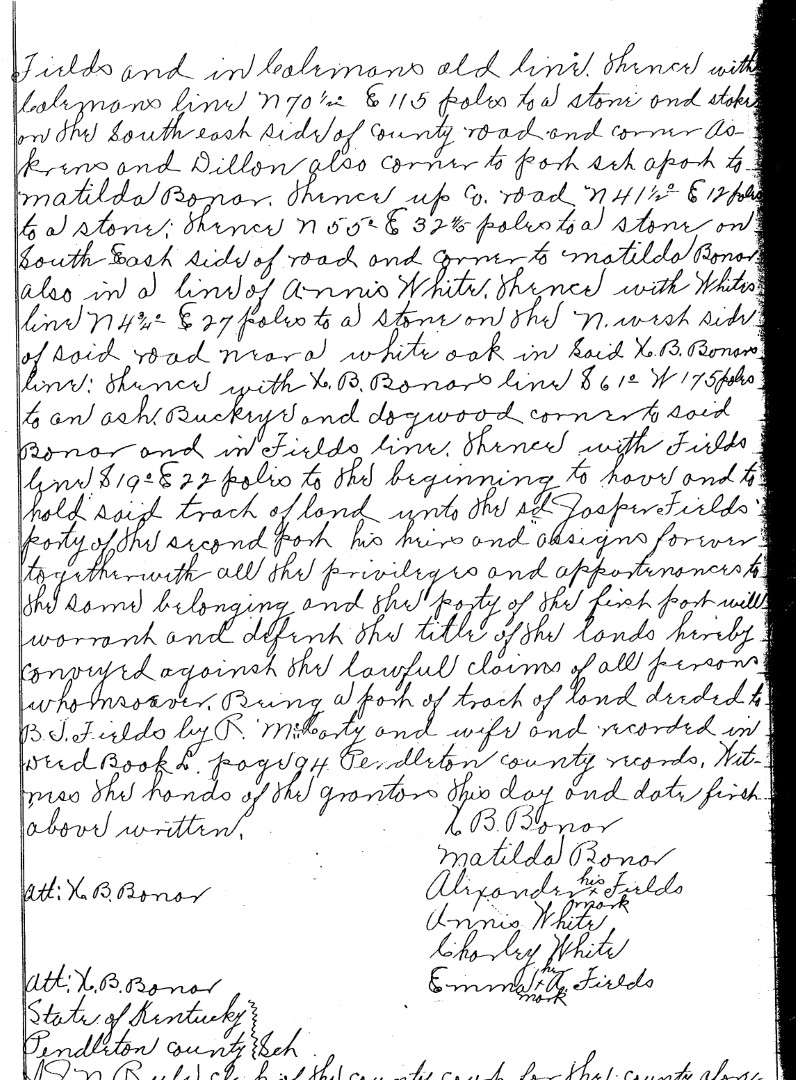 Fields his wife of Pendleton Co. and state of Ky. and Annis White