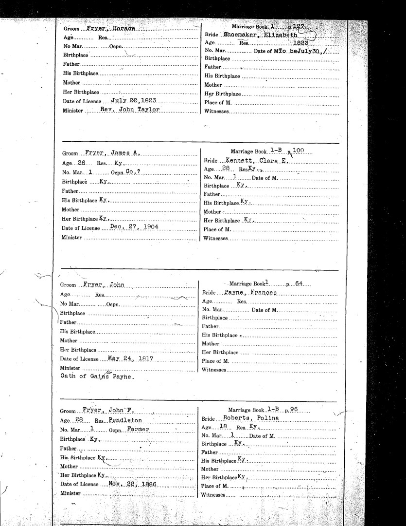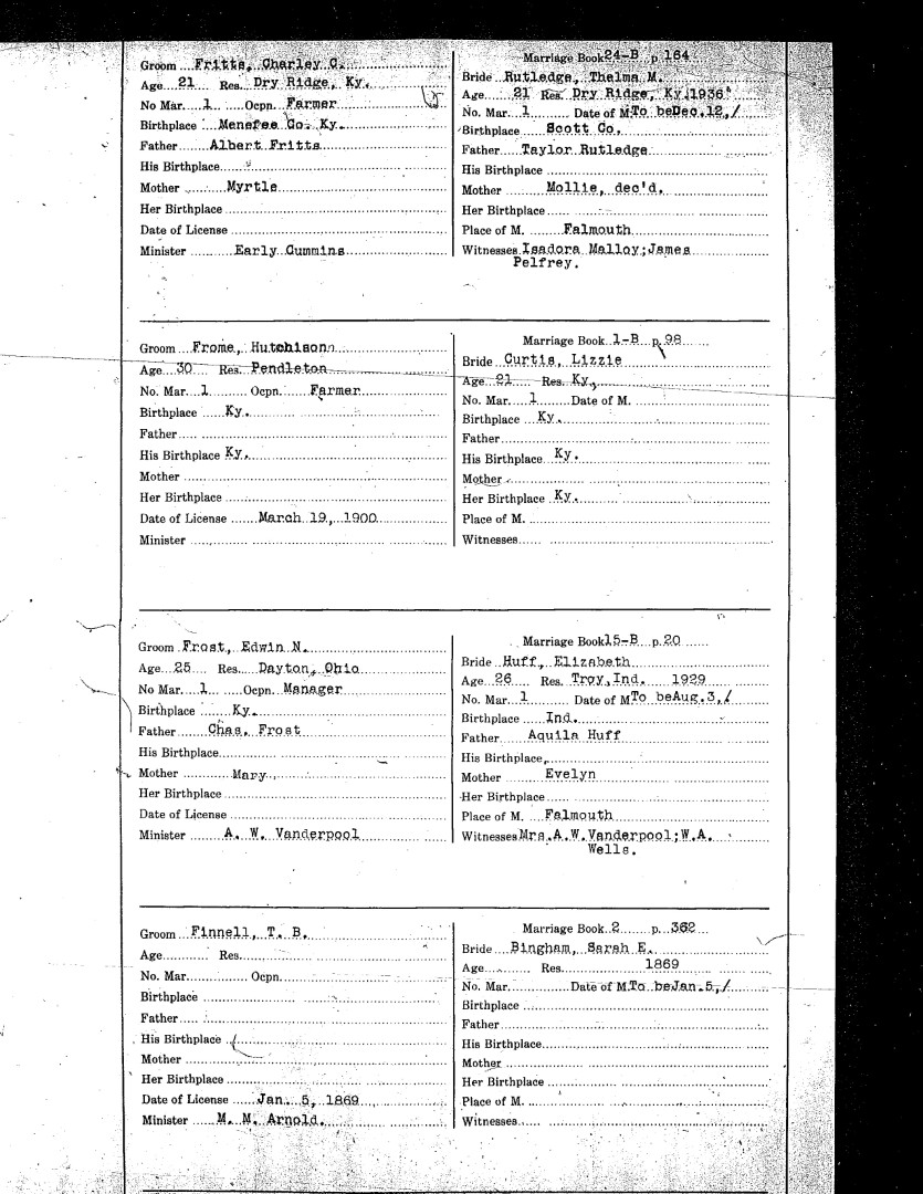 Pendleton County Marriages