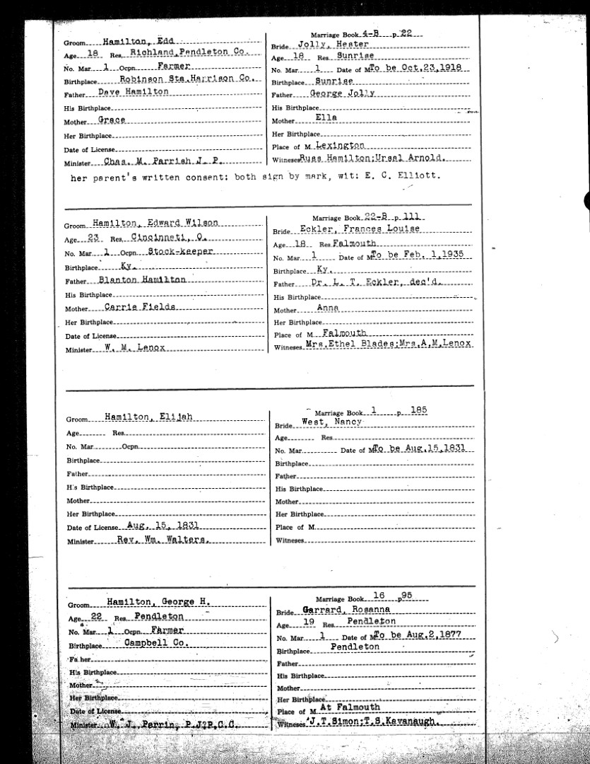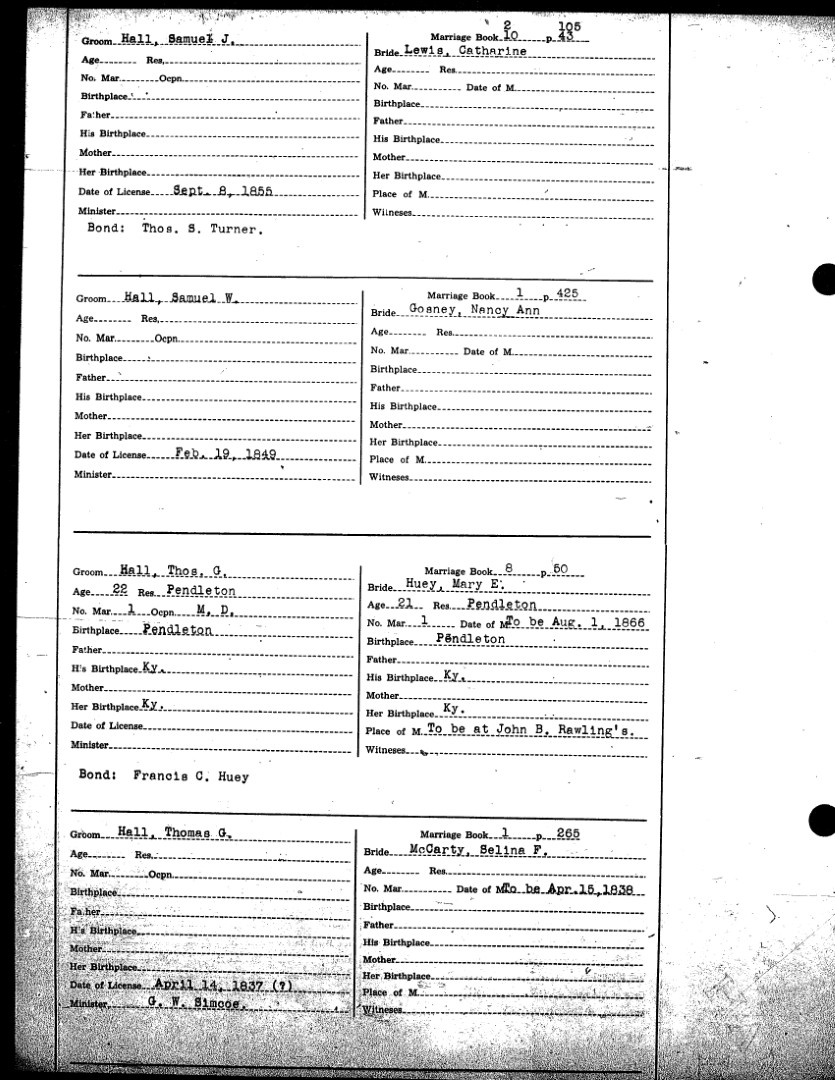 Pendleton County Marriages